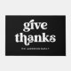 Diese einfache und schicke Tür sagt "danke" in der Retro-weißen Typografie auf dunkelschwarzem Hintergrund und ist der perfekte Weg, um Ihre Zuhause für Ihren Erntedank oder Freunde Abendessen Gäste zu dekorieren.