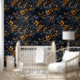 Dark Academia Orange und Blue Floral Tapete