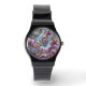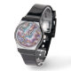 Mit dieser eleganten Armbanduhr, die ein atemberaubendes, lila, dunkelblaues und aquamarines Marmorkunstmuster aufweist, stärken Sie Ihr Outfit. Diese Uhr ist ein ideales Geschenk für sich selbst oder jemanden, der etwas Besonderes ist, und sie dient als schöne Ergänzung zu Ihrer alltäglichen Mode.