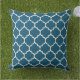 Dark Aquamarin Blue Ivory Quatrefoil Trellis Muste Kissen