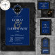 Dark Gothic Black Floral Satin Damask Blue Wedding Einladung