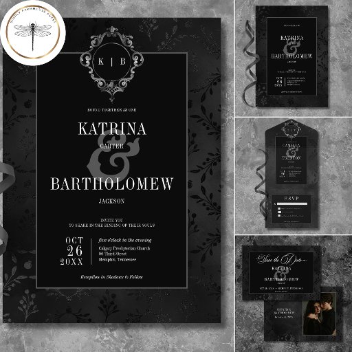 Treten Sie ein in eine Welt der dunklen Eleganz mit unserer bezaubernden gotischen Hochzeit Dankeschön Karte. Set gegen eine atemberaubende schwarz-schwarze Damastasatin Vintage Blumentapete, Ihr Foto nimmt die zentrale Bühne und strahlt eine geheimnisvolle und zeitlose Atmosphäre aus. Oben auf der Rückseite kreuzen Vintage graue und schwarze Karikaturen die ersten Initialen des Paares und verleihen dem Design eine Touch königlichen Glanz. Dieses Design mit seinem altertümlichen Look ist eine perfekte Mischung aus alter Welt und zeitgenössischer Anziehungskraft. Die Faszination der Vergangenheit, die die Zeit mit diesem faszinierenden gotischen Hochzeitsdesign überschreitet, ist ein Muss. Erstellt von der einfachen Farmhouse Press.