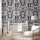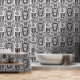 Diese luxuriöse Tapete mit einem Set von gut aussehenden Löwenköpfen im dunklen Graphitstil.