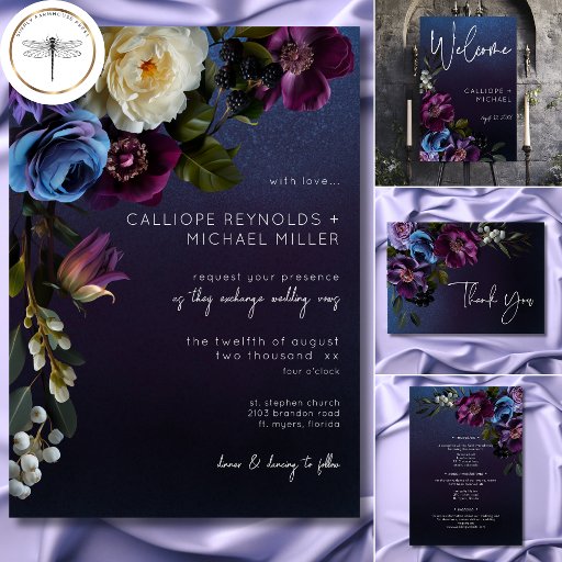 Dark Moody Blue & Lavender Floral Modern WeddingDesignt von Kathe Santillo