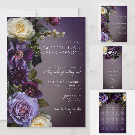 Dark Moody Purple Lavender Floral Modern WeddingDesignt von Kathe Santillo