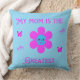 Dieses Bild zeichnet sich durch ein fröhliches und farbenfrohes Design aus, mit der Phrase "Meine Mutter ist die Bestste", geschrieben in leuchtend rosa stilisierten Schriftart. In der Mitte befindet sich eine niedliche Blume mit rosa Blütenblättern und einem blauen kreisförmigen Gesicht, das mit einem herzlichen Lächeln und den Wangen-Erröten behaglich wirkt. Um die Blume herum sind zwei rosa Schmetterlinge und zwei rosa umrissene Herzen, die eine spielerische und liebevolle Touch hinzufügen.