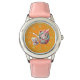 Kinderuhr aus Edelstahl mit rosa Lederarmband