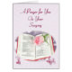 Eine rosa Rose, die auf einer offenen Bibel liegt, um Ihr spezielles Gebet zu senden.
