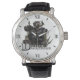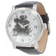 Uhr, Vintage Männeruhr mit schwarzem Lederarmband