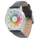 Moderne und schlanke Vintage inspirierte Farbraduhr. Dieses hochwertige Uhrwerk ist mit einem schönen Farbradmuster aus einer Vintagen Kunstillustrierung aus dem 19. Jahrhundert verziert. "The Prismatic" ist in einer großen Auswahl an Stil- und Gurtvarianten erhältlich. "Die Prismatische" Armbanduhr kontrastiert das schlanke moderne Styling der heutigen Mode mit einer sehr, sehr alten Illustration der Schulkunst. Eine kühne und einzigartige künstlerische Modeaussage. Führe dich dementsprechend...