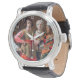 Uhr, Vintage Männeruhr mit schwarzem Lederarmband