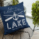 Stilvolles Seehaus-Kissen mit marineblau-blauem Hintergrund, das in jede Farbe verändert werden kann, Bootsfahrer, Anker, das niedliche Sprichwort "Leben am See ist besser", Ihr Familienname und das etablierte Jahr.