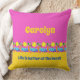 Das Leben am Strand ist besser - dieses stilisierte Muster auf einem quadratischen Kissen hat einen Fries entlang des unteren feierlichen Strandlebens mit Sonnenschein, Palmen, blauem Meer und goldenem Sand. Das Design wird durch hellrosa und sonnengelbe Farbblöcke ergänzt. Das Kunstwerk ist ein originelles, einzigartiges, handgezeichnetes, zeichnend, digital gefärbtes Werk. Sie können es mit Ihrem eigenen Namen und Ihren eigenen Worten personalisieren.