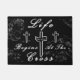Eine wunderbare Gottesbotschaft mit einer Silhouette von drei Kreuzen, um die Christen daran zu erinnern, dass das ewige Leben am Kreuz Christi beginnt.