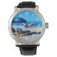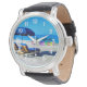 Uhr, Vintage Männeruhr mit schwarzem Lederarmband