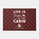 Diese rustikale Familienhütte wird Familie und Freunde in Ihrer Hütte begrüßen. Das Design zeigt den Satz "Das Leben ist besser in der Hütte" mit Akzenten eines Pfeils, Hirsche und Waldkiefern. Der Hintergrund in einem roten und schwarzen Büffel-Karo kariert von rustikalem Holz. Personalisieren Sie mit Ihrem Familiennamen und Jahr festgelegt.