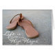 Grußkarte mit einem Foto aus braunem Leder dreht Flop Sandalen. Das Leben ist besser in Flip Flops! Copyright ©Magnum Creative Group. Alle Rechte vorbehalten.