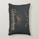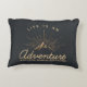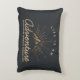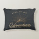 Akzentkissen mit goldfarbener Abbildung auf schwarz-grauem Hintergrund. Entworfen mit einer Abbildung eines Berges, in dem die Sonnenstrahlen von hinten leuchten. Typografie sagt: Das Leben ist ein Erlebniserlebnis Traumwelt entdecken.