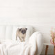 Ursprünglicher Entwurf der feinen Kunst eines freundlichen Mopshundes durch Künstler Carolyn McFann zwei des schnurrenden Katzen-Studios druckte auf einem Qualität Amerikaner Mojo Kissen für Hunde- Kunstfans.