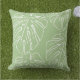 Das Motiv aus weißem tropischem Leaf auf hellgrün Kissen
