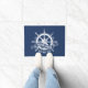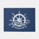 Dieses stilvolle nautische Navy Blue Doormat besticht durch ein schön gerendertes Rad, ein zeitloses Symbol für Segeln und Abenteuer. Passen Sie es mit dem Namen Ihres Bootes und dem Datum der Einrichtung an, um einen einzigartigen und personalisierten Empfang für die Gäste zu schaffen.