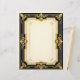 Ein vergoldeter Rahmen mit stilisierten Blätter auf schwarzem Hintergrund macht dieses Schreibpapier elegant und raffiniert. Ideal für Korrespondenz, Einladungen und Flyer.