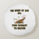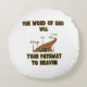 Dieses runde Kissendesign hat einen kapsalon-komprimierten Schriftart mit schwarzen Buchstaben in einer Kontur, der den Satz "Das Wort Gottes wird deinen Weg zum Himmel beleuchten" mit einer Sammlung von Straßenlicht entlang des Weges und einem Schild zeigt, das das Wort Himmel auf den Weg dieses religiös begründeten Bibelthemas zeigt. Dieses Kissen ist aus hochwertigem Stoff gefertigt, unsere Kissen sind weich und faltenfrei, die Abdeckung ist maschinenwaschbar.
