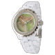 Eine wunderbare Damenuhr mit weißem Armband und grün-weiß-kariertem Ziffernblatt. Trägt sich ganz fabelhaft. Exzellenter Druck, sehr klare Farben. Schönes Design.