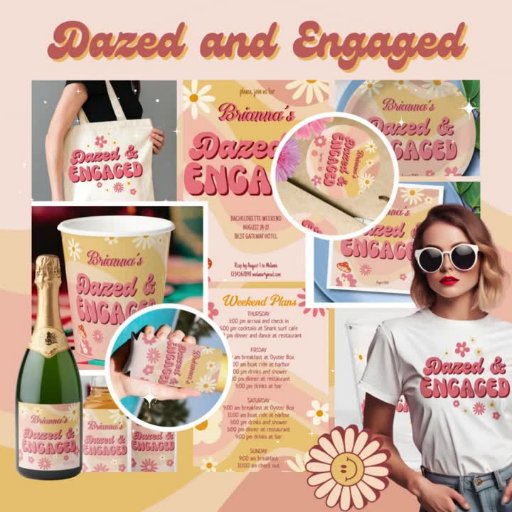 Dazed and engaged groovy retro bachelorette partyDesignt von Ieva Jenciute