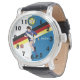 Uhr, Vintage Männeruhr mit schwarzem Lederarmband
