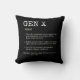Fügen Sie Ihrer Wohngestaltung mit unserem Generation X Definition Kissen eine Touch von Witz und Nostalgie hinzu. Dieses einzigartige Kissen erfasst die Essenz der berühmt selbstbewussten Erziehung der Generation X. Dieses Kissen ist nicht nur ein bequemes Accessoire, sondern auch ein Statement-Stück, das bei jedem ankommt, der während der Zeit der Kassettenkassette aufgewachsen ist, im DFÜ-Internet und bei wahren Abenteuern im Freien - das bedeutet Überwachung. Es eignet sich hervorragend, um Ihrem Wohnzimmer, einer Halle oder einem Schlafzimmer ein wenig Spaß und persönliche Geschichte hinzuzufügen. Dieses aus hochwertigen Materialien gefertigte Kissen bietet Komfort und Langlebigkeit, sodass es den lebhaften Diskussionen über die besten 80er Jahre oder die unterbewerteten Retro-Videospiele standhalten kann. Es ist ein ausgezeichnetes Geschenk für jeden Gen Xer, der ein gutes Lachen und eine Fahrt nach der Gedächtnisspur schätzt.