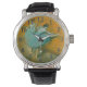Uhr, Vintage Männeruhr mit schwarzem Lederarmband