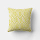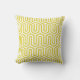 Ein Art Déco, ägyptisch inspiriert geometrisches Motiv in Senfgold / dunkelgelb auf einem weißen Kissen im Hintergrund