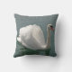 Ein weisser Schwan in stolzer Schwimmhaltung vor dunkelgrauem Wasser ist das Design dieses American MoJo Dekokissens.