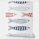 Modernes Design in Rot, Blau und Weiß mit Fisch-Sardinen. Eine nautisch inspiriert Design-Abbildung perfekt für den Sommer. Das perfekte Summer Party Dekor oder das Zuhause-Dekor für Ihr Strandhaus. Ideal für alle, die Fisch, Sardinen, Ozean und nautische Themen Lieben zeigen die Küste und Sommer themed Designs.