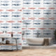 Dekorative Rot & Blau Sardinen Fischmuster Tapete
