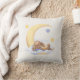 Dekoratives Kissen mit einem niedlichen, plüschigen Kaninchen, das auf dem Mond in den Wolken schläft.