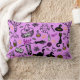 Dekoratives Kissen mit modernem minimalistischem Design zu Halloween, Silhouetten eines Besens, Eule, Spinnennetz, Silhouette einer Katze, Velma auf rosa Untergrund.