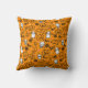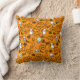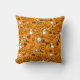 Dekoratives Kissen mit modernem minimalistischem Design zu Halloween, Silhouetten von Schädeln, Gespenstern, Spinnweben, einer KatzenSilhouette, Kürbissen auf orangefarbenem Hintergrund.