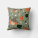 Dekoratives Kissen mit modernem minimalistischem Design zu Halloween, Katzengesichtsmuster, Hexe, Kürbis auf grünem Hintergrund.