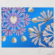 Seashell-Kunstmuster in runden Kaleidoskop-Bildern. Bilder der tropischen Muschel, die in Form von Sailors Valentines angeordnet sind, und alte Gewohnheiten, wenn Seeleute Muscheln benutzen, um Geschenke für Angehörige zu machen.