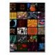 bunte Collage mit Herzen, Blumen, Ungeheuer, Geschöpfe, metallische dekorative Bilder, Scheiben, gesponnene Muster, Kreise, Bälle, psychedelische Bilder, Quadrate, in einem modernen Bildfliesenmuster der grafischen Kunst mit Schwarzem, rot, orange, weiß, braun, grün, lila, blau, gelb und rosa, in einer mehrfarbigen mehrfarbigen und interessanten Mischung des modernen Computers assited Grafikbilder