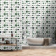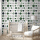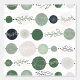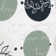 wallpaper with abstract patterns, circles, dots, handwriting, leaves, botanical design