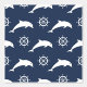 Nautisches Muster mit Silhouetten von Delphinen und Lenkrädern | © und ® Bigstock® - Alle Rechte vorbehalten.