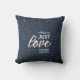 Eine schlichte, moderne, elegante und schicke Denim- und Diamantenwurfkissen mit einem denim Hintergrund, die Botschaft "Nichts extravagant, nur Liebe" mit dem Wort LIEBE bedeckt mit weißen Diamanten (simuliert, nicht echte Diamanten) und in der modernen Kalligraphie-Skript, und Typografie in Weiß. Ein elegantes "Denim and Diamonds" Design für eine moderne Braut und das moderne Paar. Ein schönes Geschenk für die Bacheloretten und andere weibliche Mitglieder der Hochzeitsfeier. Auf der Rückseite befindet sich ein einfacher Diamantensteg, der als moderne Dekoration dienen kann.