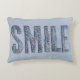gerötete Denim-Buchstaben, die Lächeln mit rotem Akzent heften