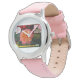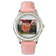 Kinderuhr aus Edelstahl mit rosa Lederarmband