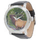 Uhr, Vintage Männeruhr mit schwarzem Lederarmband