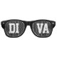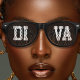 Coole schwarze Retro-Sonnenbrille mit dem Text "DIVA". Große Sommer- oder Party Modebrille für Damen und Herren.