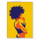 Afrocentric Frau in den glänzenden Farben denkend an ihren nächsten Schritt.